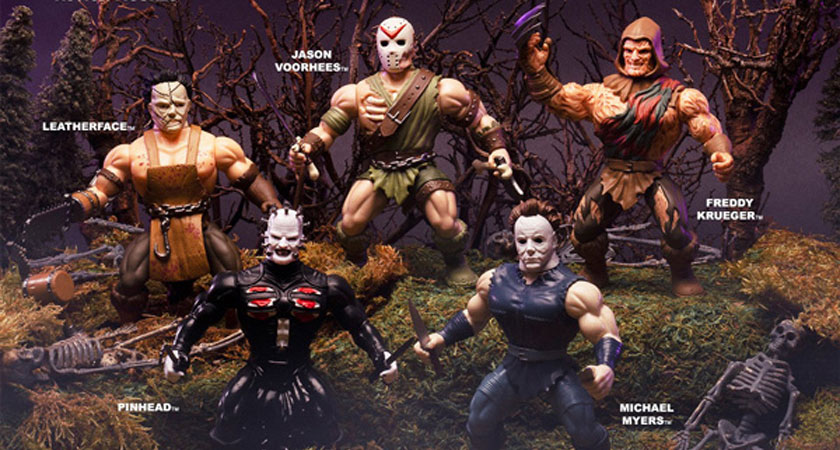The series will feature five iconic characters from horror including Freddy Krueger from Nightmare on Elm Street, Jason Voorhees from Friday the 13th, Leatherface from The Texas Chainsaw Massacre, Michael Myers from Halloween Resurrection and Pinnhead from Hellraiser III.  Each figure comes with a fitting set of accessories, Freddy comes with his iconic glove, Jason comes with a machete and axe, Leatherface with what appears to be an interchangeable chainsaw or mallet hand, Michael Myers with a pair of knives, and Pinhead with a pair of knives and the Lament Configuration.