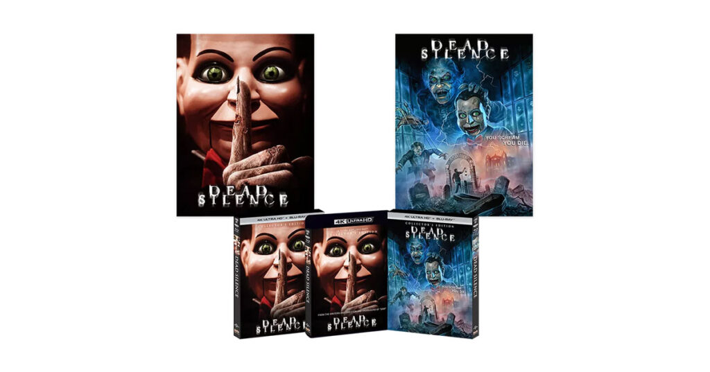 The new 4K UHD release of “Dead Silence” is available for pre-order now from ShoutFactory.com for $39.98. It includes an exclusive “18 x 24” rolled poster of the original theatrical artwork, a second exclusive “18 x 24” rolled poster featuring a new design from artist Devin Whitehead, and two slipcovers that match the poster designs.