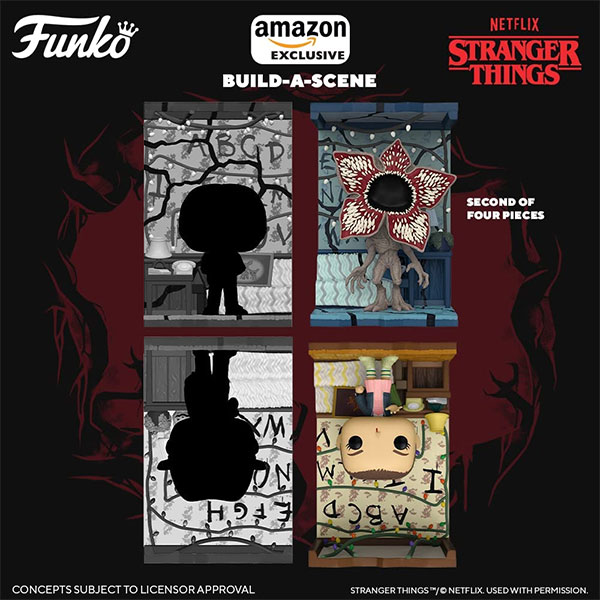 “Stranger Things” is the latest property to get the Build A Scene treatment from Funko. The Deluxe Pop! figures are designed to be collected and combined to build scenes from your favorite pop culture properties. The “Stranger Things” series is comprised of four separate figures, which can be displayed independently or combined to build your very own Byers House and Upside Down.